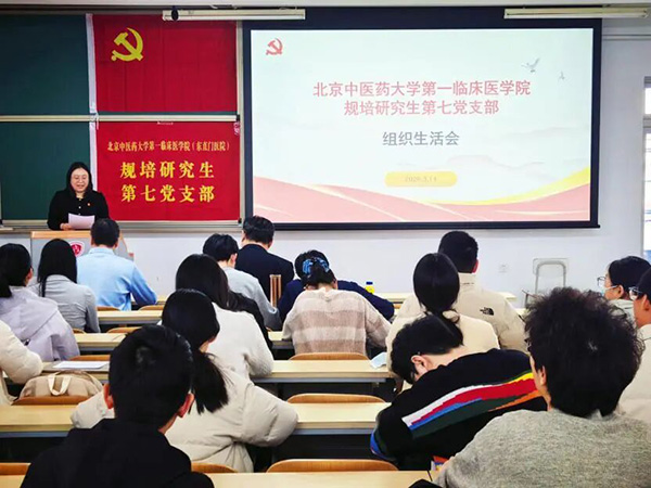 为进一步学习贯彻党的二十大精神,持续提升基层党组织凝聚力与战斗力,近日,规培研究生第七党支部组织召开2025年度组织生活会暨民主评议党员大会。北京中医药大学党委常委、副校长王停,第一临床医学院党委委员、教育处处长刘伟敬列席会议并作指导,与支部全体党员一同回顾初心使命,共谋岐黄事业发展。