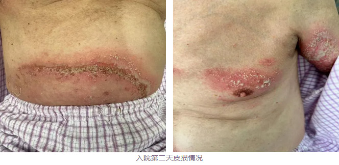 1 个月来,病情急剧加重,四肢、腹部和腰臀部出现皮疹伴泛发性脓疱,还伴有双肘关节肿痛。3 天前,H 先生又出现发热,体温高达 38.9℃,皮疹瘙痒疼痛明显,双肘关节及腰痛剧烈,弯腰困难。看着老人日渐消瘦的脸,家人们满心忧虑,却只能暗自着急。