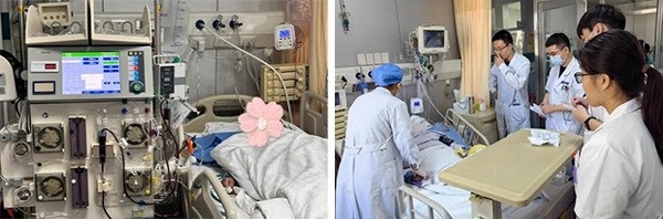 (左)全力以赴抢救患者 (右)每日严密监护患者