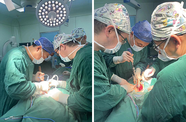 患者为54岁的维吾尔族男性,因“高处坠落伤致腰部及双下肢活动受限3小时”入院。经诊断“腰3椎体爆裂骨折、胸12椎体压缩性骨折”。何鹏宇医师经查体、综合评估判断患者手术指征明确,与患者及家属充分沟通后,带领科室同事一起为其制定手术方案。