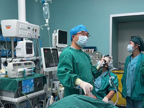 患者W先生(化名),62 岁,确诊食管中分化鳞癌。近3天喘憋加重、无法平卧,于2026年1月2日下午紧急入住某院急诊科。给氧后,患者仍危重,呼吸困难、张口呼吸、面色青紫,血氧饱和度持续下降,生命体征不稳。院方建议尽快转至东直门医院通州院区行呼吸内镜介入术。