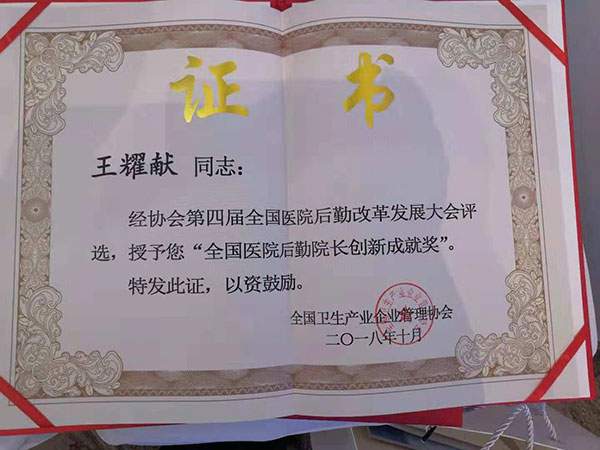 王耀献院长喜获“全国医院后勤院长创新成就奖”东直门医院荣获“改革开放四十年创新发展示范单位”