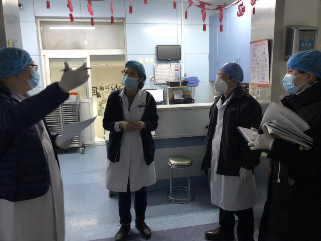 2020年2月4日上午东直门医院血液肿瘤科当天所有值班医护技人员,在侯丽主任、范秋月护士长带领和监督下,完成了穿脱防护服、七步洗手法等疫情防控技术的复习、巩固与演练。每个人都积极认真学习和讨论,根据上级下发的培训材料,每个要点逐一过关。医务处郑宏副处长带队一行来到我科检查,侯丽主任代表科室汇报工作,并接受检查。疫情发生后我科上下一心、积极响应,每日认真学习下发文件,全员掌握要求与流程。多位医护人员放弃休息坚守岗位,侯丽主任、范秋月护士长身先士卒,和多位我科医护人员一起主动请缨,要求驰援武汉,起到了共产党员的先锋模范作用。